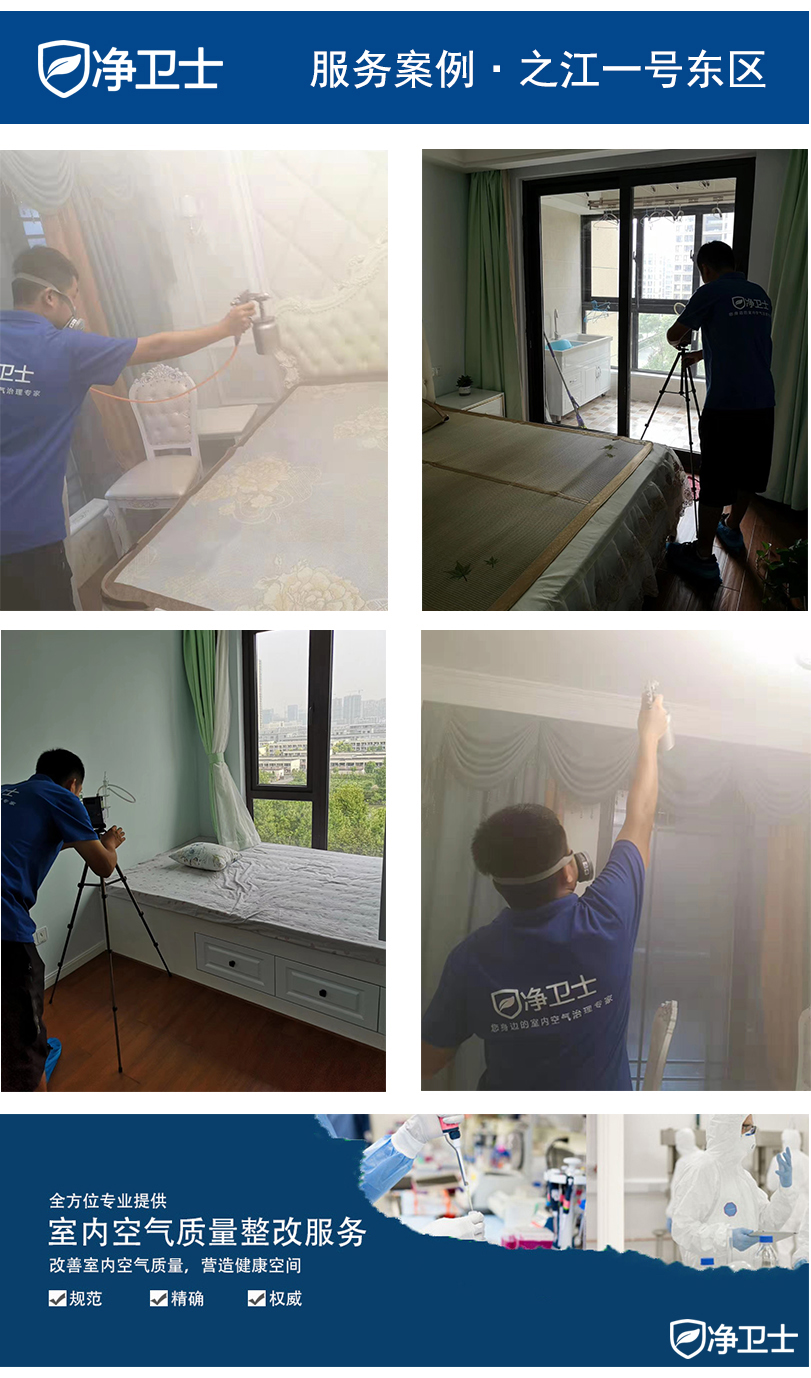 施工详情:户主所购的房子家具都置办齐全已经入住了,由于考虑到家人的居住环境,找到检测机构上门进行检测,显示污染物超标,于是找到了净卫士上门进行治理。